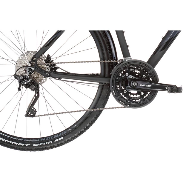 La transmission Shimano Deore de haute qualité avec changement de vitesse XT assure un confort de changement de vitesse et une faible usure. Associé aux freins à disque hydrauliques de Shimano et à des fixations solides, le Tenaya est prêt à relever tous les défis. Les pneus Schwalbe Smart Sam Performance offrent toujours la bonne adhérence avec une faible résistance au roulement sur les surfaces meubles comme sur l’asphalte.