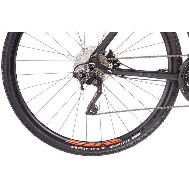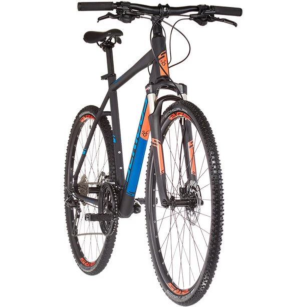 La transmission Shimano Deore de haute qualité avec changement de vitesse XT assure un confort de changement de vitesse et une faible usure. Associé aux freins à disque hydrauliques de Shimano et à des fixations solides, le Tenaya est prêt à relever tous les défis. Les pneus Schwalbe Smart Sam Performance offrent toujours la bonne adhérence avec une faible résistance au roulement sur les surfaces meubles comme sur l’asphalte.